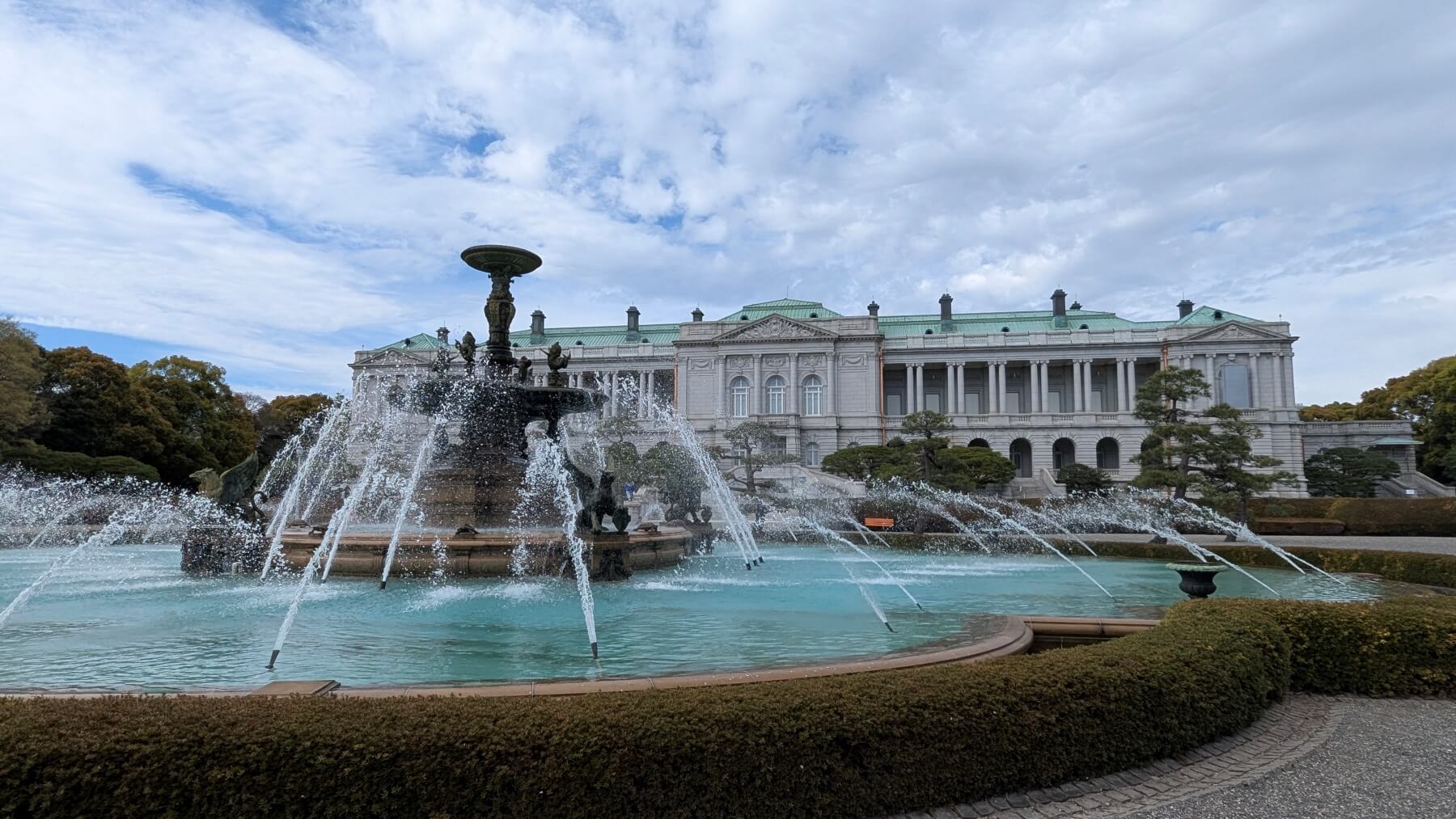 本館内部も噴水のある庭園も