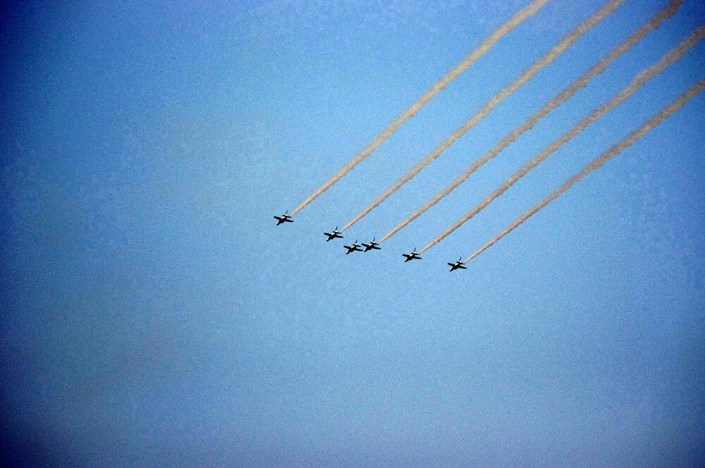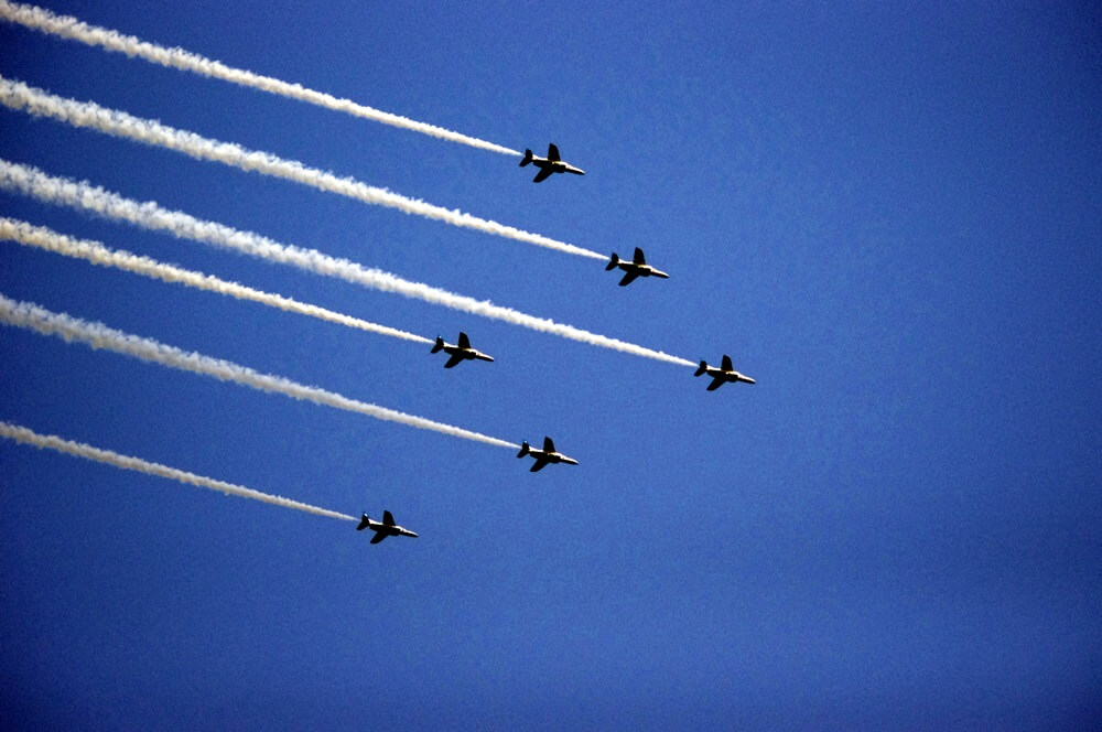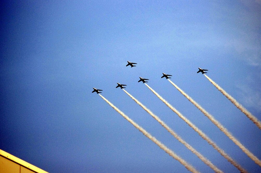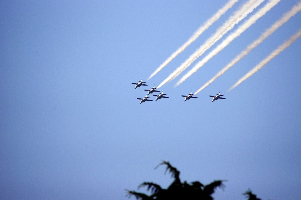 一瞬で過ぎ去るブルーインパルス。