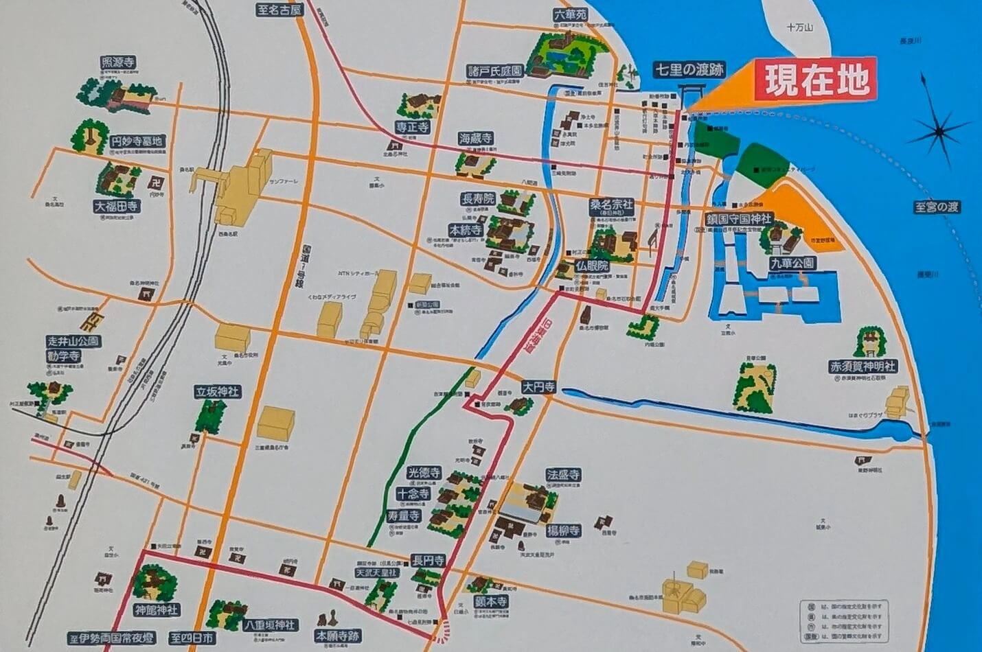 桑名駅から徒歩約20分の場所にある。