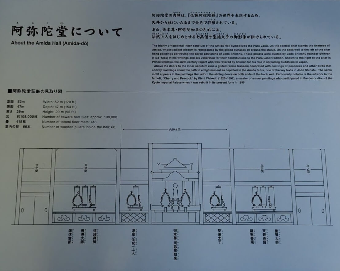東本願寺は本尊である阿弥陀如来を安置する極めて重要な堂閣だが、1864年の「禁門の変(蛤御門の変)」で全焼しており、この阿弥陀堂は明治28年(1895年)に再建されている。