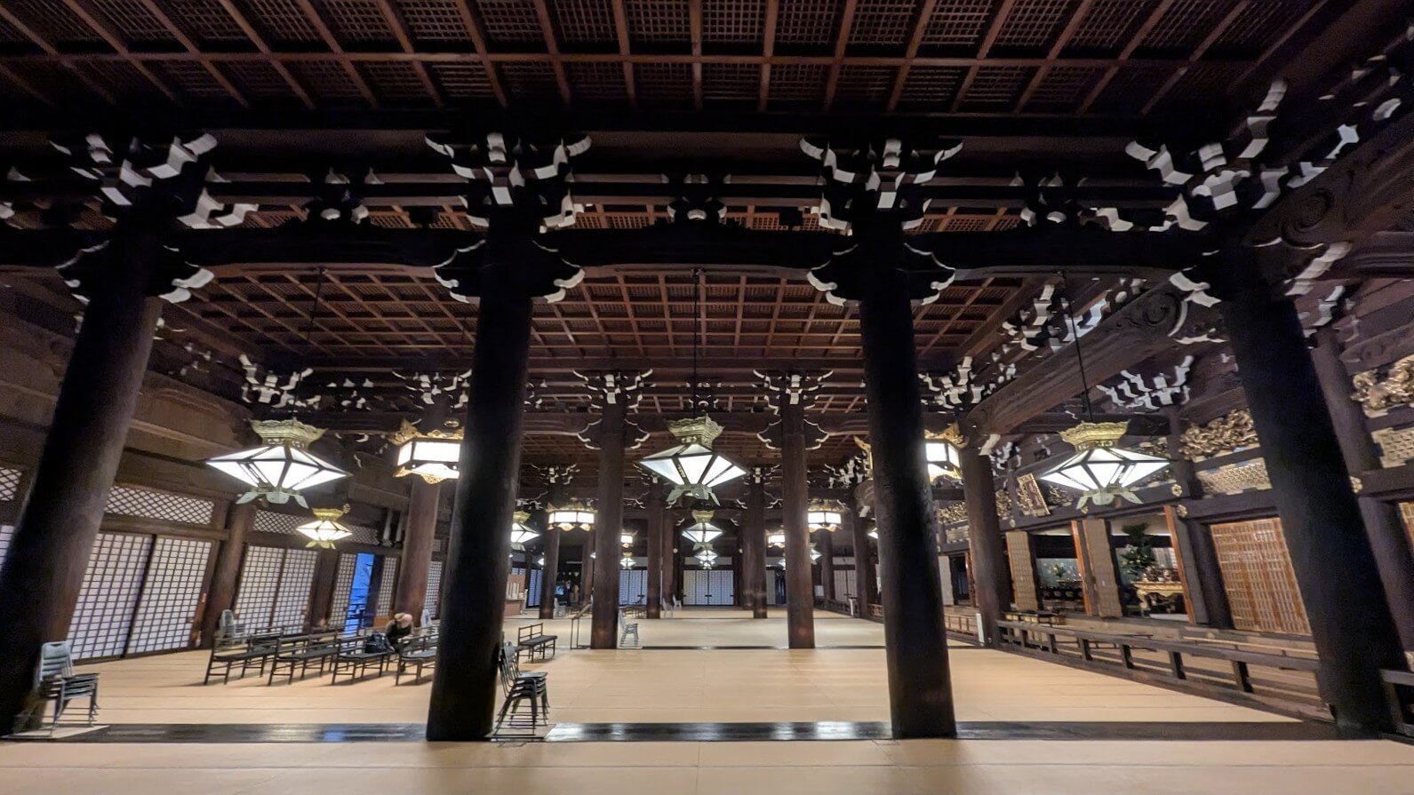 東本願寺の御影堂は縦横高さともに桁違いの大きさだ。