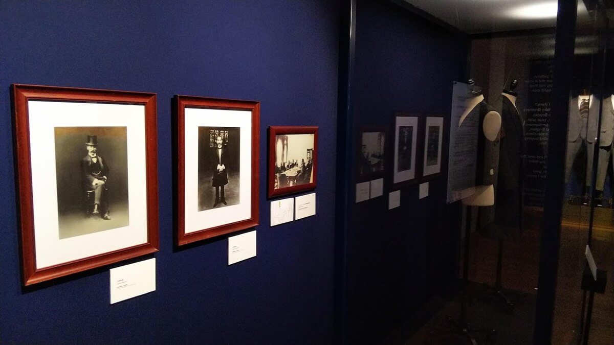 大きな黒のフロックコート(レプリカ)が展示されている。