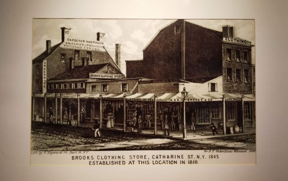 ヘンリー・サンズ・ブルックスにより創業された同社は、NYのキャサリンストリートとチェリーストリートの交差点の北東の角に作られたこの小さな店からスタートした。