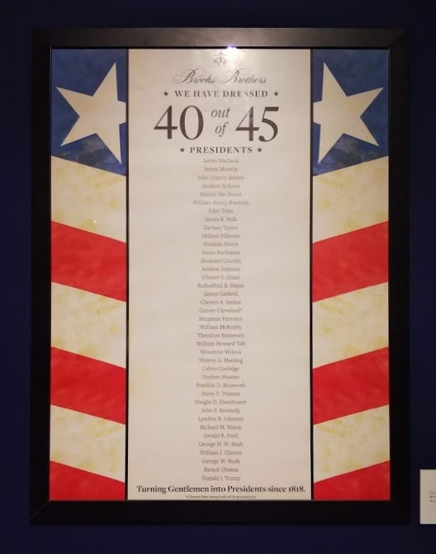 トランプ大統領までの大統領経験者45人のうちなんと40人がブルックスブラザーズの顧客になっている。