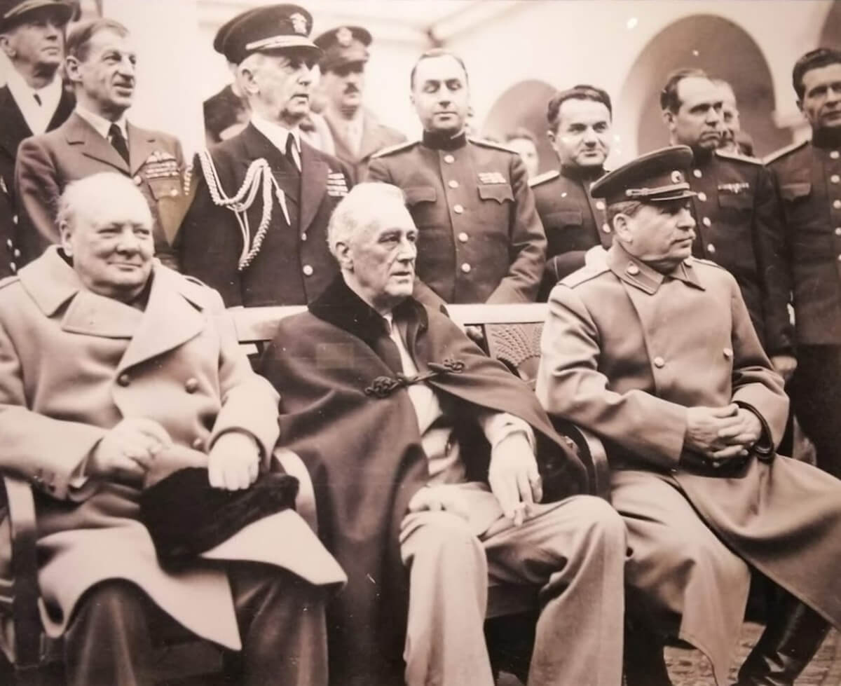 左は英国ウィンストン・チャーチル首相、右はソビエト連邦最高指導者スターリン。